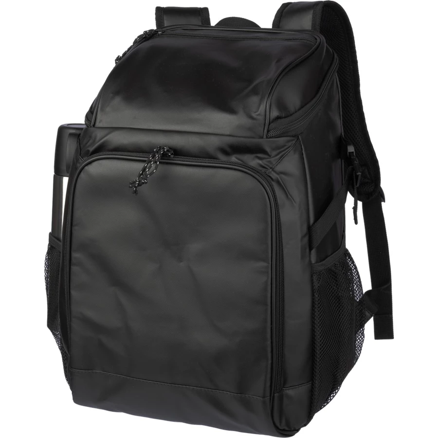Plecak termoizolacyjny, przegroda główna oraz przednia kieszeń na zamek błyskawiczny, posiada boczną kieszeń siateczkową z elastyczną taśmą zamykającą, wodoodporne wnętrze, pomoże zachować świeżość żywności oraz napojów, produkt wykonany z poliestru