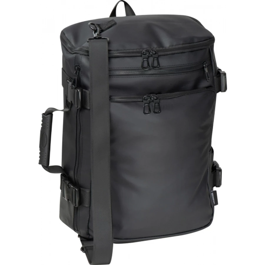 Plecak wykonany z poliestru 900D, o pojemności 19 litrów. Szelki można schować wewnątrz plecaka i nosić go jak torbę.