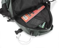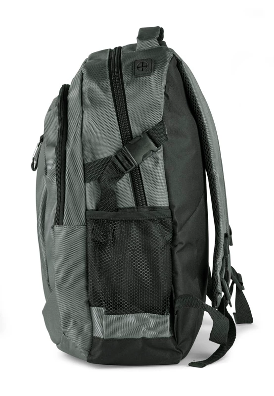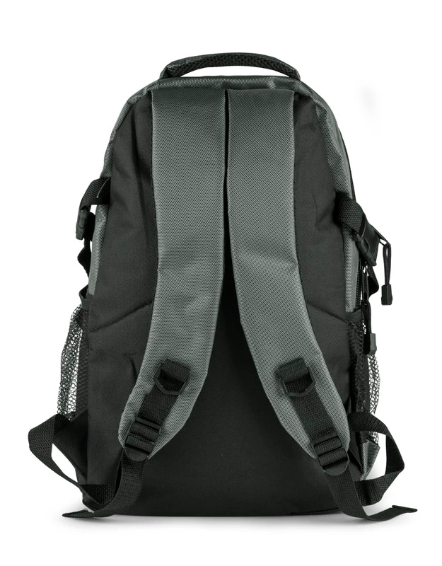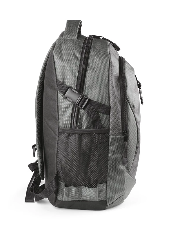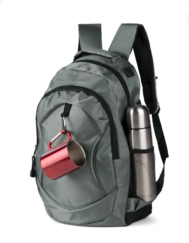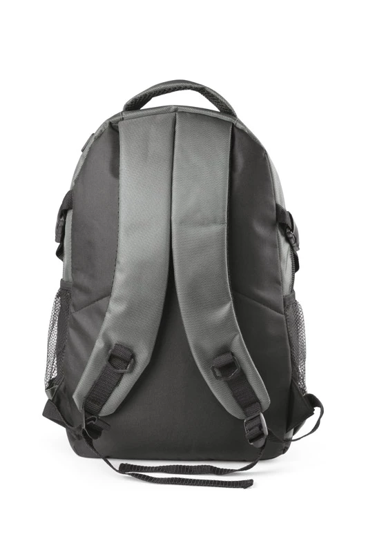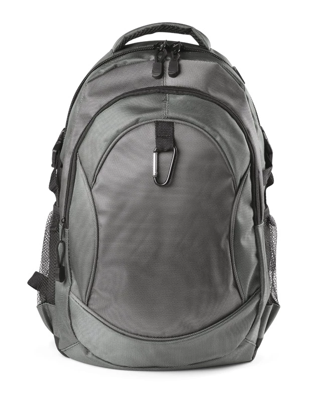 Profesjonalny plecak turystyczny wykonany z niezwykle mocnego poliestru 1680D wzmocnionego technologią RIP-STOP, która dodatkowo czyni materiał wyjątkowo odpornym na rozdarcia. Wzmocniona wodoodporność materiału pozwala na swobodne podróżowanie także przy niesprzyjającej pogodzie. Komora główna z kieszenią na plecach i małą kieszonką na zamek oraz z otworem na przewód słuchawkowy. 1 kieszeń przednia oraz 2 boczne kieszenie siateczkowe. Plecak ściągany paskami bocznymi, wyposażony w karabińczyk. Szelki z grubą gąbką, od spodu wykończone siateczką. Usztywniane plecy. Plecak łączy w sobie funkcjonalność, wygodę użytkowania oraz wysoką jakość wykonania. Znakowanie haftem jest możliwe, ale wyłącznie pod indywidualne zapytanie.