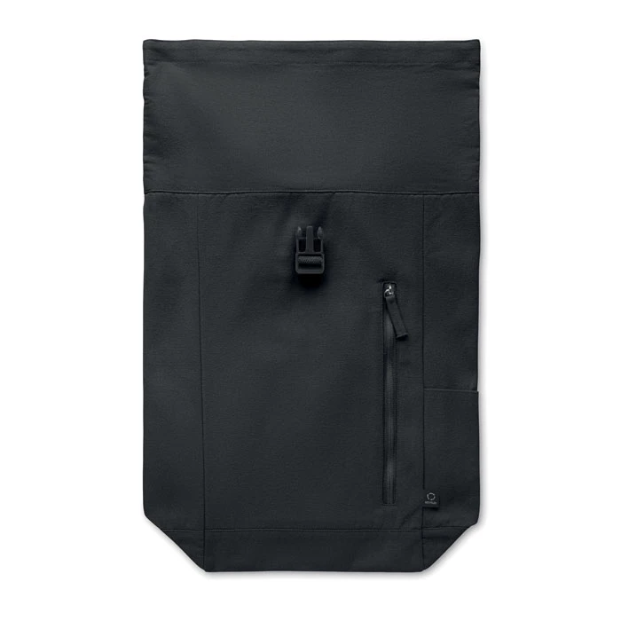 Plecak z zapięciem na rzep wykonany z bawełny z recyklingu o gramaturze 390 gr/m² (80%) i poliestru z recyklingu (20%). Przednia kieszeń zapinana na zamek.