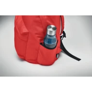 Plecak z poliestru 600D RPET z zewnętrzną kieszenią na zamek. Wyściełany tył i boczna przegródka na butelkę.