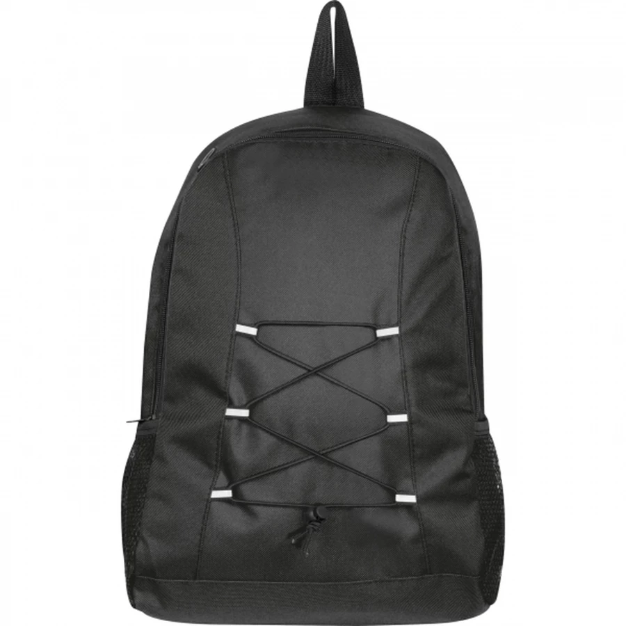 Plecak wykonany z poliestru 600D, pochodzącego z recyklingu. Plecak posiada uchwyt do przenoszenia, dwie siatkowe kieszenie boczne i watowane szelki.