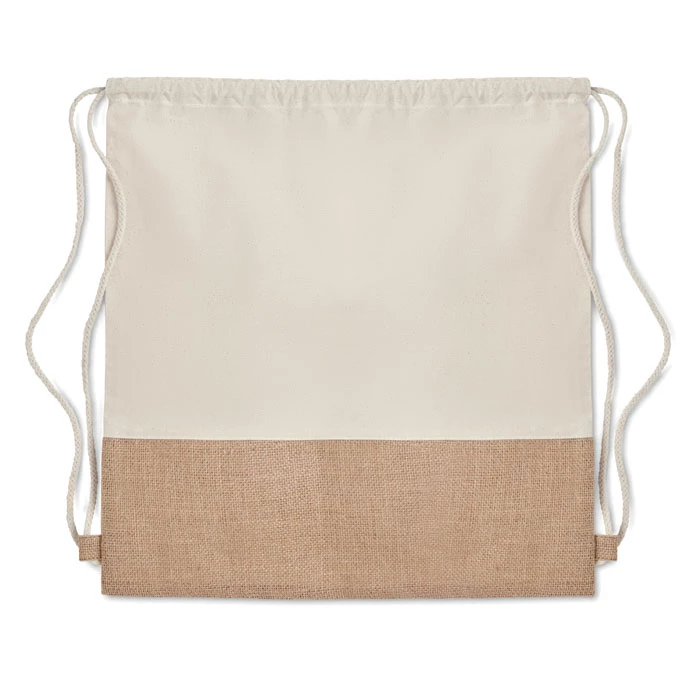Bawełniany worek ze sznurkiem ze wstawkami z juty. Długie rączki. 160 g / m².