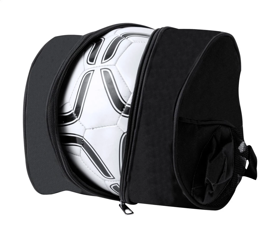 Zapinana na zamek torba na piłki, wykonana z poliestru 600D RPET, z siatkową kieszenią na butelkę i regulowanym paskiem na ramię. Dostarczane bez piłki.