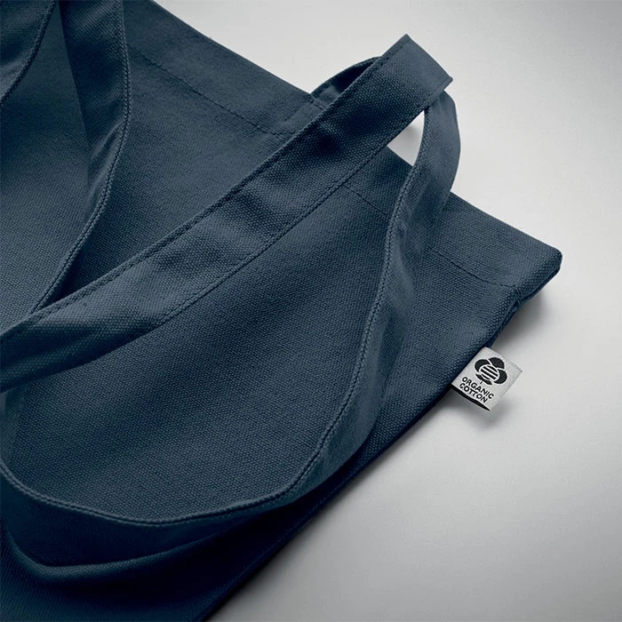 Płócienna torba na zakupy z długimi uchwytami. 270 gr/m². Wykonana z bawełny organicznej. Ten produkt posiada certyfikat OEKO-TEX® STANDARD 100.