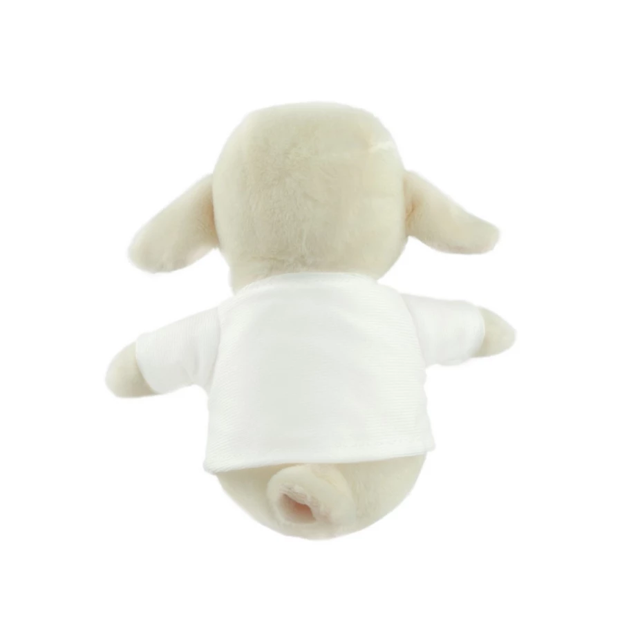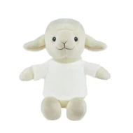 Owca z białą koszulką pod nadruk (nieoznakowana koszulka pakowana oddzielnie), wykonana z pluszu pochodzącego z poddanych recyklingowi butelek PET, zgodna z certyfikatem GRS (Global Recycled Standard)