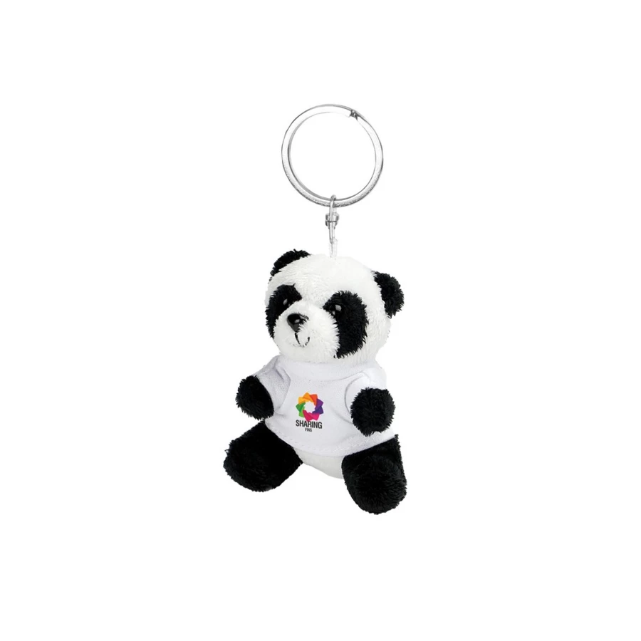 Brelok "panda" z białą koszulką pod nadruk, nieoznakowana koszulka z poliestru jest pakowana oddzielnie, produkt wykonany z pluszu