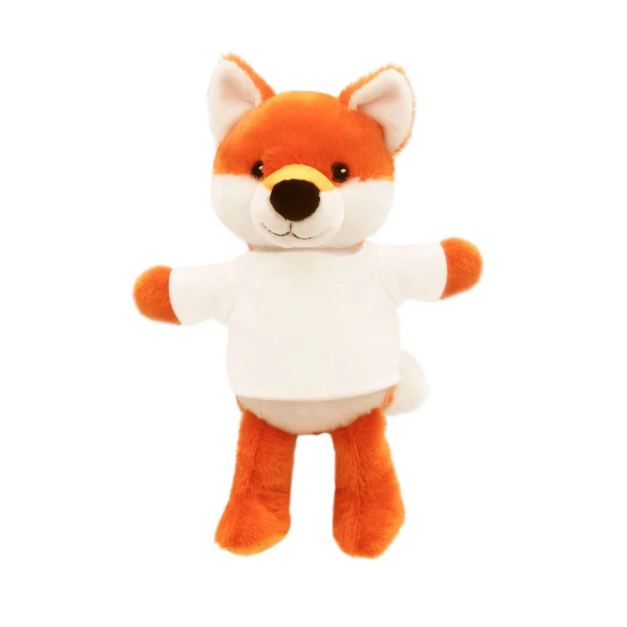 Lis z białą koszulką pod nadruk (nieoznakowana koszulka pakowana oddzielnie), wykonany z pluszu pochodzącego z poddanych recyklingowi butelek PET, zgodny z certyfikatem GRS (Global Recycled Standard)