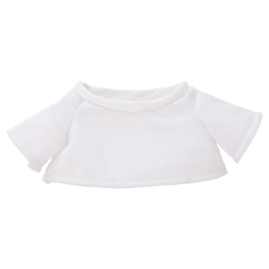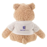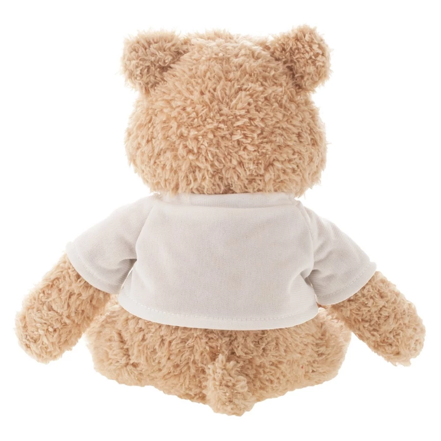 Beżowy miś z białą koszulką pod nadruk, nieoznakowana koszulka z poliestru jest pakowana oddzielnie, produkt wykonany z pluszu