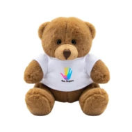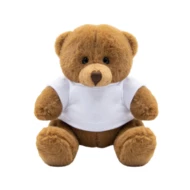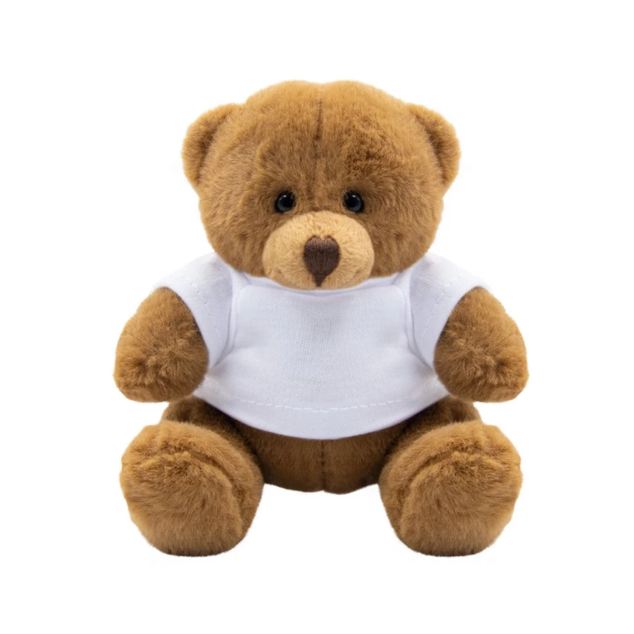 Brązowy miś z białą koszulką pod nadruk, nieoznakowana koszulka z poliestru jest pakowana oddzielnie, produkt wykonany z pluszu