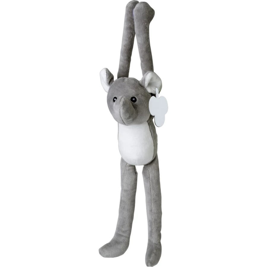 Pluszowy słoń z długimi ramionami, haftowane oczy, rzepy na dłoniach, zawieszka pod nadruk