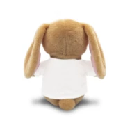 Zając z białą koszulką pod nadruk (nieoznakowana koszulka pakowana oddzielnie), wykonany z pluszu pochodzącego z poddanych recyklingowi butelek PET, zgodny z certyfikatem GRS (Global Recycled Standard)