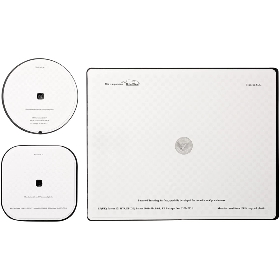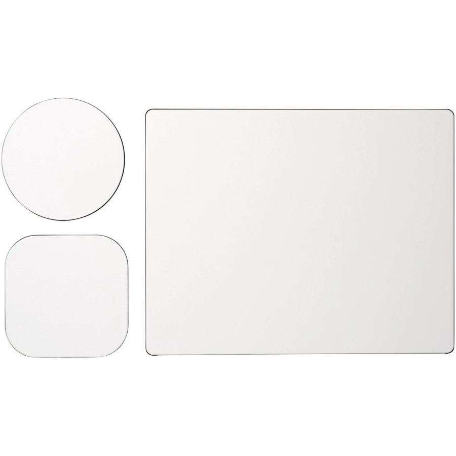 W zestawie podkładka pod mysz Brite-Mat i zestaw pasujących podkładek. Zestaw składa się z prostokątnej podkładki (0,3 x 19 x 21 cm), prostokątnej podkładki (0,3 x 9,5 x 9,5 cm) o okrągłej podkładki (0,3 x ø9,5 cm).