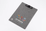 Podkładka CLIPAD to gadżet niezbędny na wszelkie konferencje czy spotkania biznesowe. W wygodny sposób można przechowywać najpotrzebniejsze dokumenty które potrzebujemy mieć przy sobie. Podkładka posiada także wieszaczek umożliwiający jej powieszenie. Wykonana z recyklingowanego tworzywa rPET.