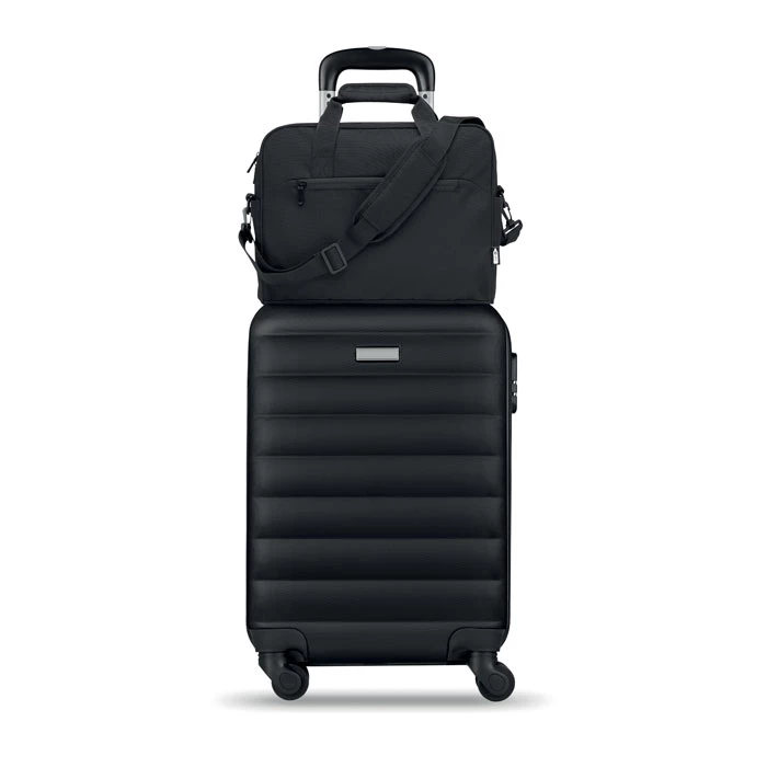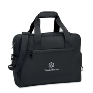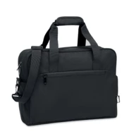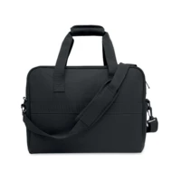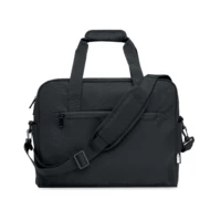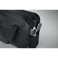 Torba podróżna z materiału 600D RPET z dużą przednią kieszenią zapinaną na zamek i dwiema małymi kieszeniami bocznymi. Zawiera przegrodę na laptopa 15 cali. Wyściełany, odpinany i regulowany pasek na ramię. Pasek do mocowania na walizce.