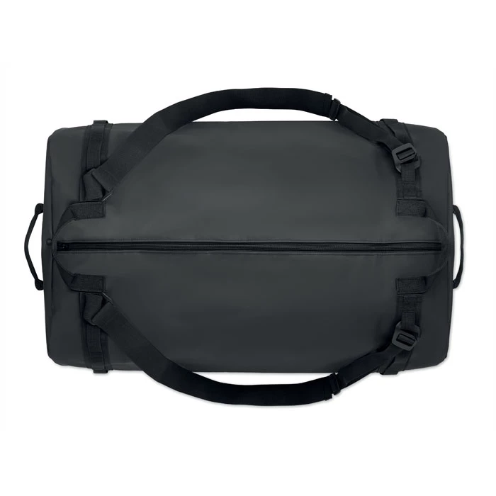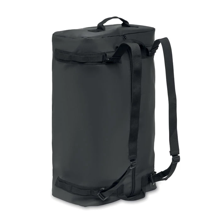 Duża torba sportowa lub podróżna, która może być również używana jako plecak, z tarpaulin 50C z wewnętrzną przegrodą zapinaną na zamek. Posiada odpinany i regulowany pasek na ramię oraz podszewkę z RPET.