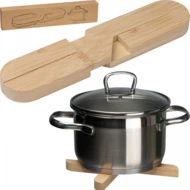 Składana podstawka do granków i patelni, wykonana z bambusa z hydrofobową powierzchnią.
