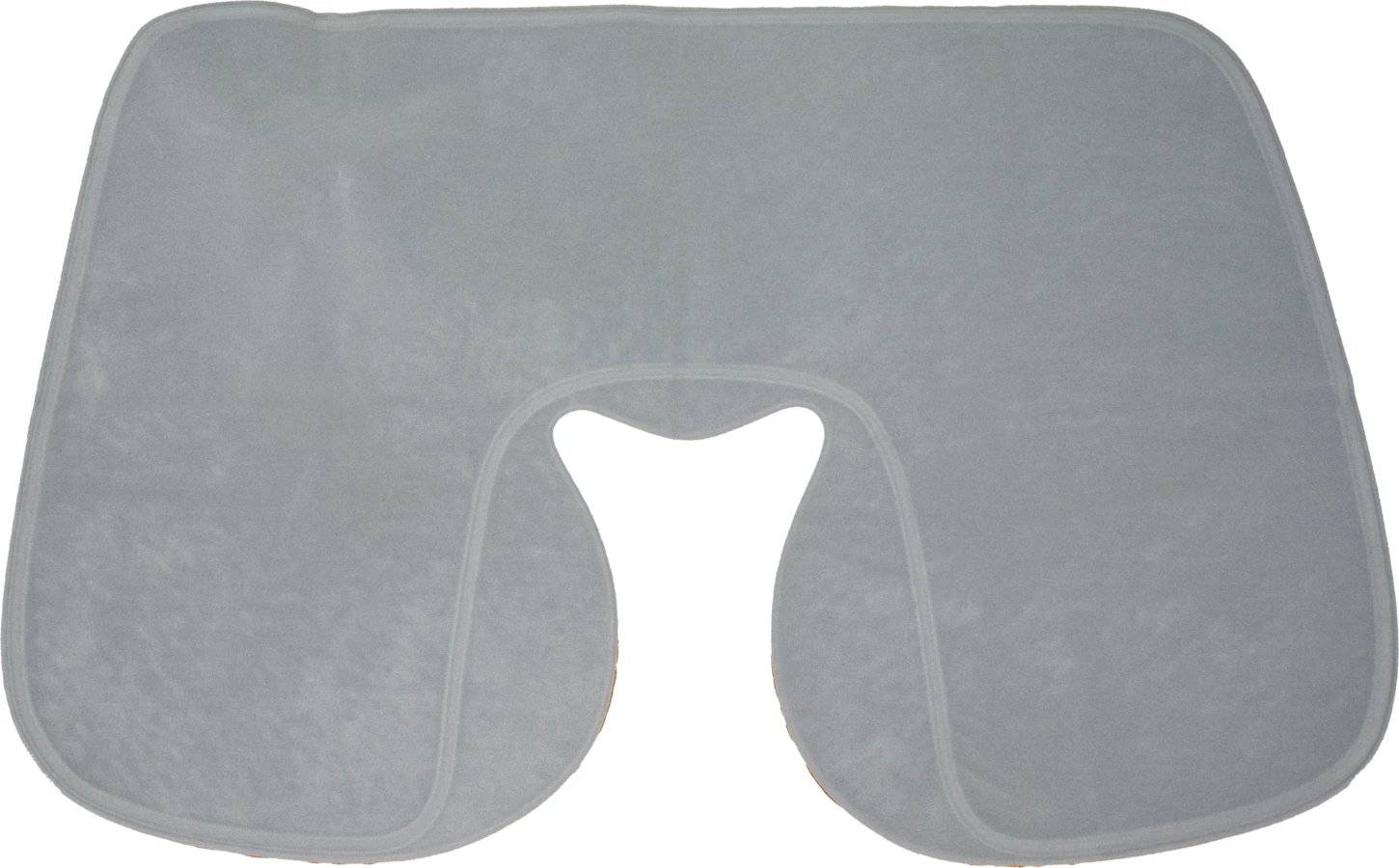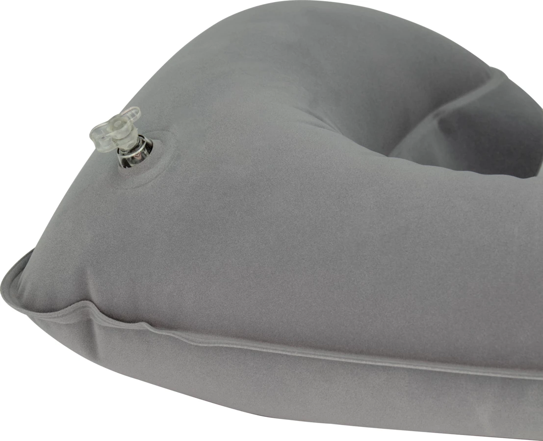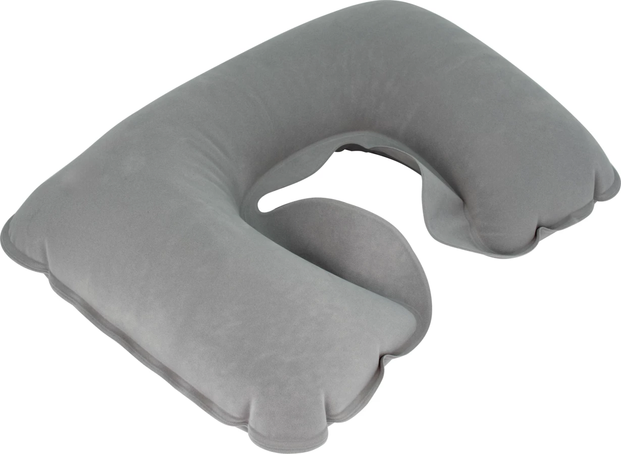 Welurowa, dmuchana poduszka podróżna o ergonomicznym kształcie. Wymiary na płasko: 41,5 x 26,5 cm, wymiary po napompowaniu: 34 x 25 x 10 cm.