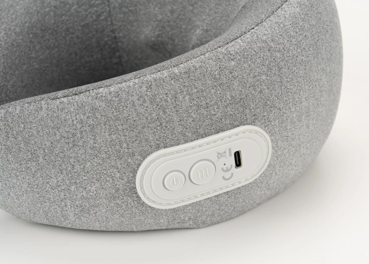 Ergonomiczna poduszka z funkcją masażu, idealnie sprawdzi się podczas podróży czy relaksu w domowym zaciszu.