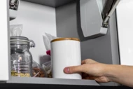 Duży, ceramiczny słoik o pojemności 750 ml, wyposażony w bambusowe wieczko z silikonową uszczelką. Świetnie sprawdzi się w kuchni.