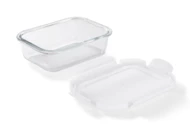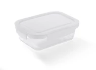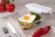 Pojemnik na żywność LASO wykonany jest z wysokiej jakości szkła borokrzemowego, innymi słowy żaroodpornego. Pojemnik posiada białą przykrywkę z tworzywa zamykaną na cztery zaczepy. Można go stosować jako pojemnik lunchowy, jako pojemnik do przechowywania żywności, a ponadto można w nim podgrzewać potrawy w piekarniku. Pojemność 500 ml.