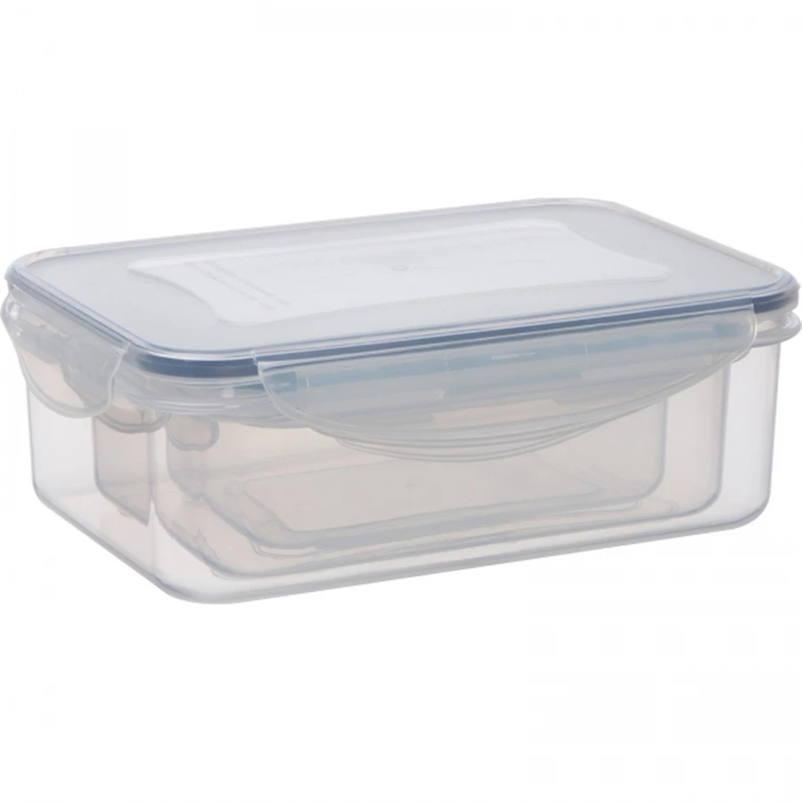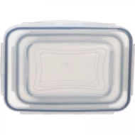 Zestaw pojemników do przechowywania żywności składający się z 3 szt. Pojemniki wykonane z plastiku ze szczelnym zamknięciem. Rozmiary pojemników: duży 1500 ml; średni 1000 ml; mały 500 ml.