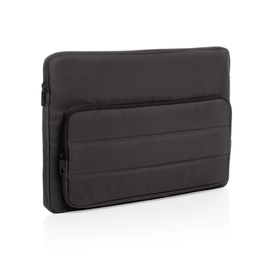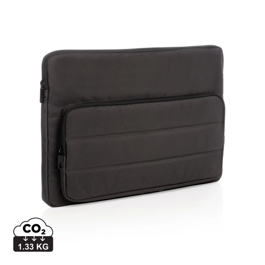 Pokrowiec na laptopa 15,6", w przedniej kieszeni zamykanej na zamek błyskawiczny 2 dodatkowe kieszenie z miejscem na 2 akcesoria piśmiennicze, pokrowca można używać samodzielnie lub umieścić go w torbie lub plecaku, tkanina zewnętrzna i poszewka wewnętrzna wykonane z pochodzącego z poliestru AWARE™ RPET, który został wykonany z butelek PET pochodzących z recyklingu z identyfikowalnym źródłem, produkt został wykonany z 16 butelek plastikowych poddanych recyklingowi, a 2% zysku ze sprzedaży każdego jest przekazywane do fundacji Water.org, nie zawiera PVC