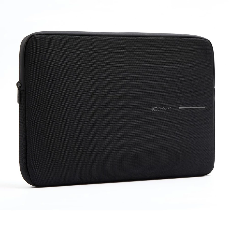 Pokrowiec na laptopa 16”, wykonany z RPET, wodoodporne wykończenie, dzięki zastosowaniu technologii AWARE™ wykorzystane materiały są identyfikowalne z pochodzenia, ślad węglowy produktu: 2,57 kg CO2
