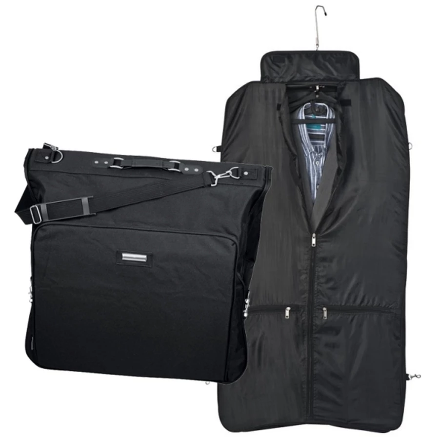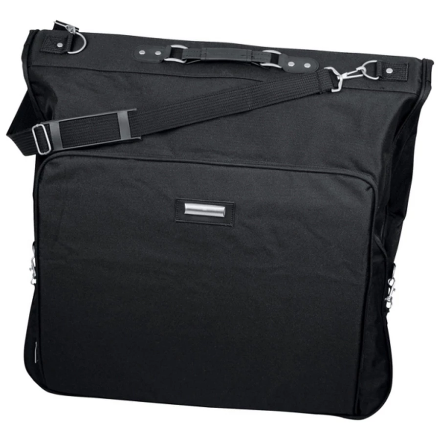Pokrowiec na ubrania SANTANDER wykonany jest z poliestru. Posiada wiele przegródek na zamek, pasek na ramie oraz wieszak w górnej części.