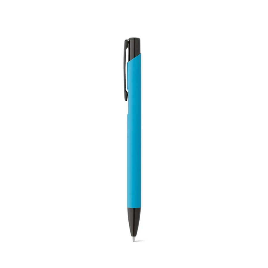 Aluminiowy długopis z kolorowym korpusem i gumowymi wykończeniami. Niebieski tusz. ø10 x 137 mm