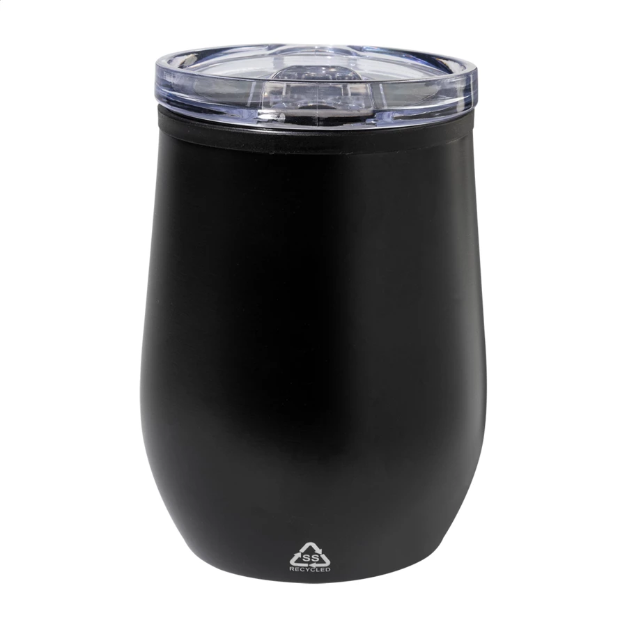 Kubek termiczny z podwójnymi ściankami, wykonany ze stali nierdzewnej z recyklingu, z wnętrzem z PP i pokrywką z polistyrenu. 350 ml.