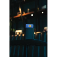 Portfel z lokalizatorem, bezprzewodowy lokalizator, wykonany z certyfikowanego recyklingowanego poliestru RCS i aluminium, obsługa technologii Apple Find My, powiadomienia o zgubieniu portfela, funkcja precyzyjnego lokalizowania na całym świecie, wbudowany dźwiękowy sygnał naprowadzający, akumulator ładowany bezprzewodowo, czas pracy do 6 miesięcy po godzinnym ładowaniu, miejsce na 3 karty oraz dodatkową przestrzeń, opakowanie prezentowe FSC® mix