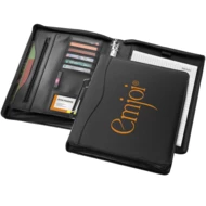 Portfolio zapinane na zamek z uchwytem, kółkami segregatora, zapinaną na zamek kieszonką i kieszeniami na dokumenty. W zestawie 20-kartkowy notatnik w linie. Nie zawiera długopisu i akcesoriów.