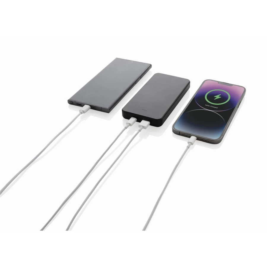 Power bank 10000 mAh z portem wejścia/wyjścia USB typu C i dodatkowym portem USB typu A, obudowa wykonana jest z tworzywa ABS pochodzącego z recyklingu z certyfikatem RCS. RCS (Recycled Claim Standard) to standard weryfikacji zawartości surowców wtórnych w produkcie w całym łańcuchu dostaw, wskaźniki zasilania wskazują pozostały poziom energii, w zestawie kabel ładujący TPE z recyklingu z certyfikatem RCS, zapakowane w opakowanie FSC® mix