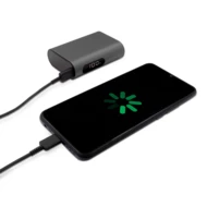 Power bank 10000 mAh, funkcja szybkiego ładowania, wejście USB-C 5-12V/1.5-3A (18W), wyjście USB 5-12V/1.5-3A (18W), wyjście USB-C 5-12V/1.67-3A (20W), możliwość ładowania dwóch urządzeń jednocześnie, cyfrowy wyświetlacz poziomu naładowania, kabel USB-C w komplecie