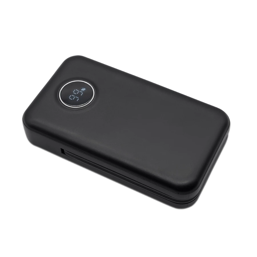 Power bank 10000 mAh z wbudowanymi kablami Typ-C i lightning. Power bank posiada funkcję szybkiego ładowania. W zestawie kabel C-C. Posiada wyświetlacz wskazujący poziom naładowania. Bateria litowo-polimerowa. 3.85V, 38.5Wh. Wejście: Typ-C 5V/3A, 9V/2A, 12V/1.5A; Kabel Typ-C 5V/3A, 9V/2A, 12V/1.5A. Wyjście: USB-A 5V/3A, 9V/2A, 10V/2.25A, 12V/1.5A 22.5W, Typ-C 5V/3A, 9V/2.25A, 12V/1.67A 20W, Kabel Typ-C 5V/3A, 9V/2A, 10V/2.25A, 12V/1.5A, kabel lightning 5V/2.1A.