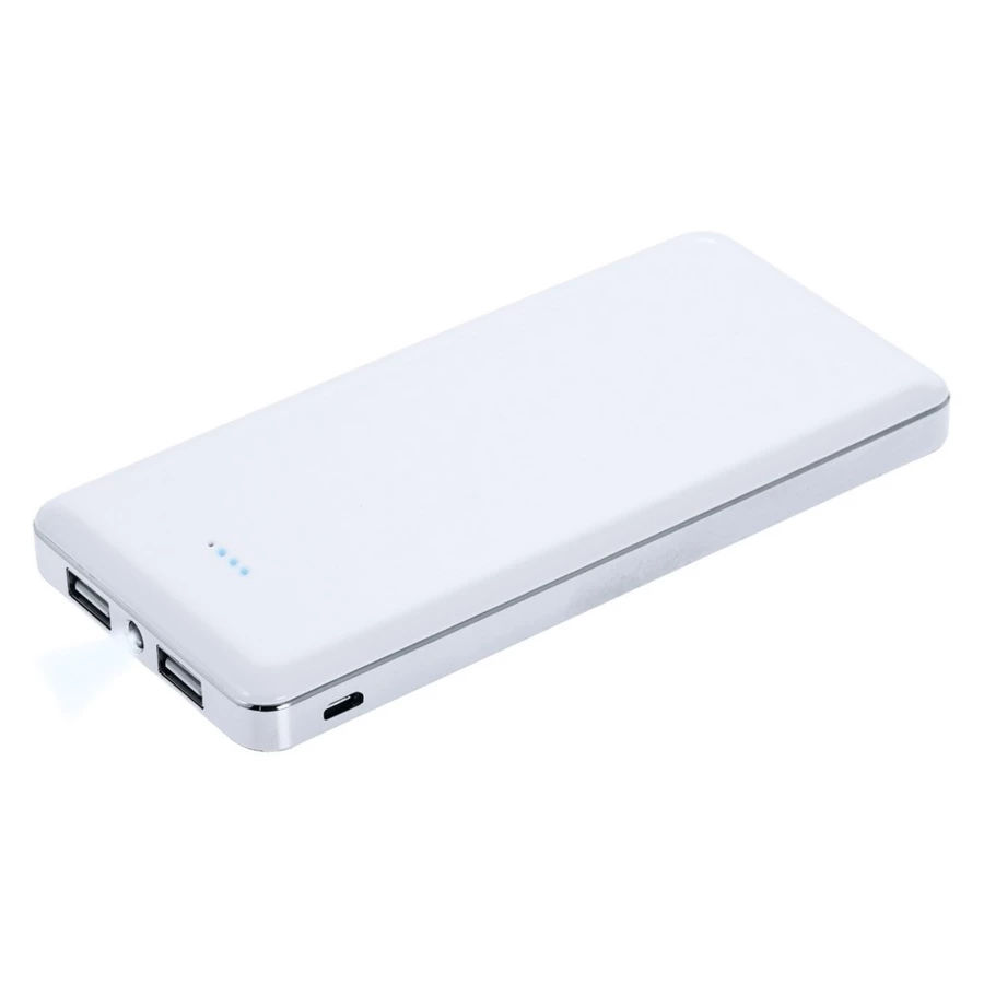 Power bank 12000 mAh z lampką i 4 diodami wskazującymi poziom naładowania, wejście 5V/1A, wyjście 5V/2A, w komplecie kabel micro USB
