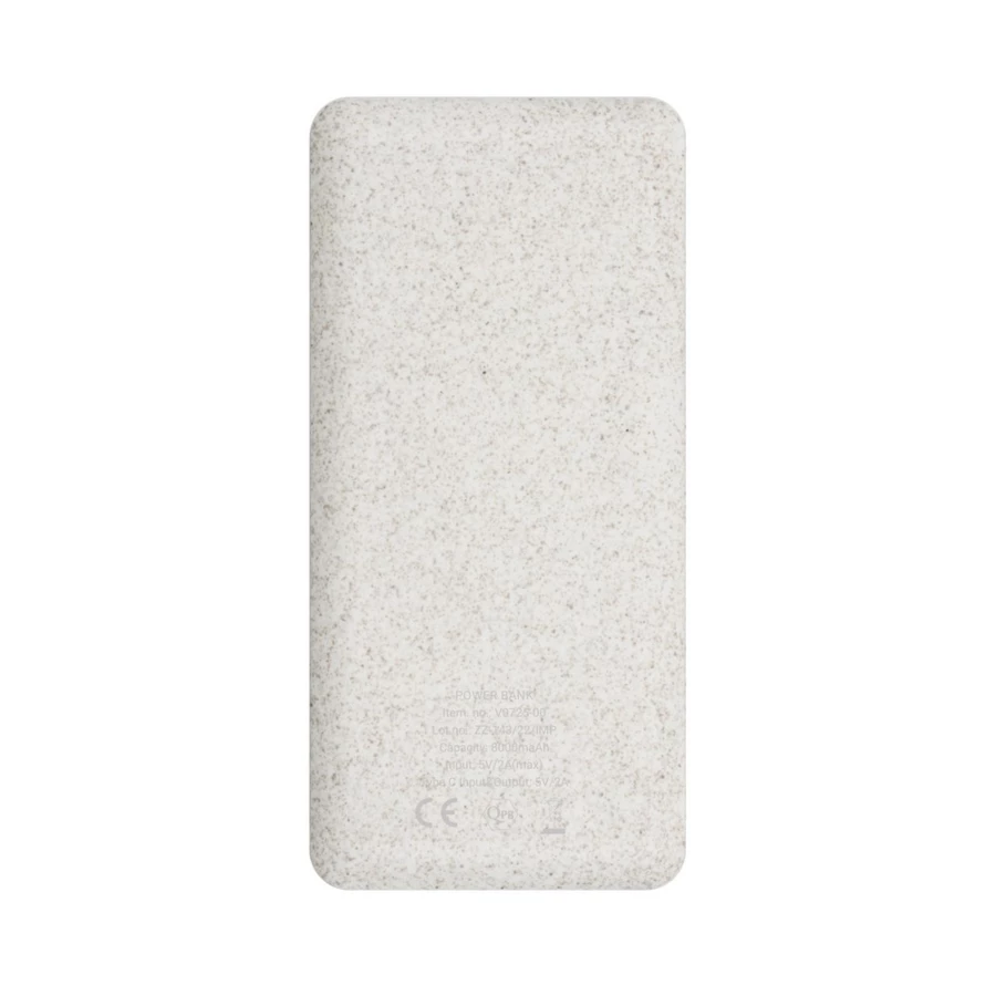 Power bank 8000 mAh z włókien słomy pszenicznej, wyjście USB, wejście micro USB 5V/2A, wejście/wyjście USB-C 5V/3A, kabel micro USB w komplecie