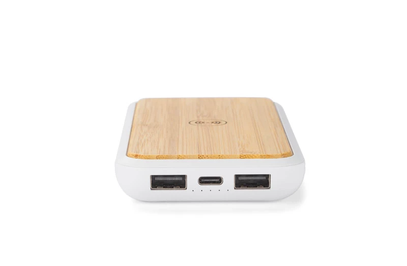 Power bank RONI to połączenie subtelnej bieli z mocnym, bambusowym akcentem, tworząc nie tylko praktyczne urządzenie, ale przede wszystkim stylowy gadżet reklamowy. Wysoka pojemność 10 000 mAh, zapewni wielokrotne naładowanie urządzeń, dostosowując się do Twoich potrzeb. Opcja ładowania bezprzewodowego oraz kablowego daje wybór, jaki preferujesz. Dane techniczne, takie jak wydajne wyjścia 2 x USB A 5V/2.1A, wejście USB C 5V/2A i bateria litowo-polimerowa, gwarantują efektywne i bezpieczne ładowanie. RONI to synonim mocy w pięknej formie. Urządzenie, na które możesz liczyć w każdej sytuacji. Do power banka nie jest dołączony kabel.