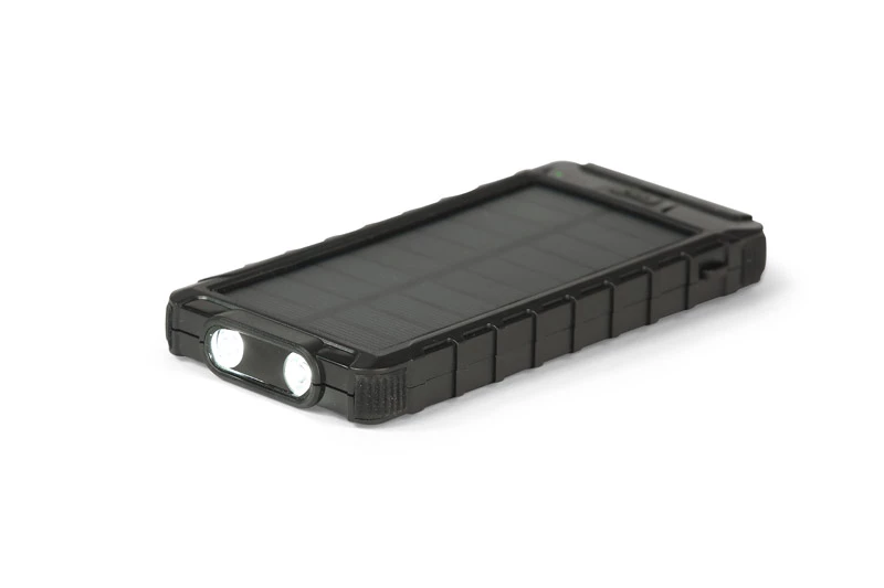 Power bank SOL posiada panel solarny i dużą pojemność 10 000 mAh, która wystarczy na kilka ładowań twojego telefonu. Diody pokazują aktualny poziom naładowania baterii. Wyposażony jest w podwójną latarkę z czterema trybami świecenia i wbudowany kompas. W zestawie standardowy kabel micro USB do ładowania. Produkt jest zgodny z odpowiednimi dyrektywami Unii Europejskiej, posiada znak CE oraz 1 rok gwarancji. Dane techniczne: wejście (micro USB i USB typu C) 5V/2A, 2 wyjścia USB 5V/2.1A (max), bateria litowo-polimerowa.