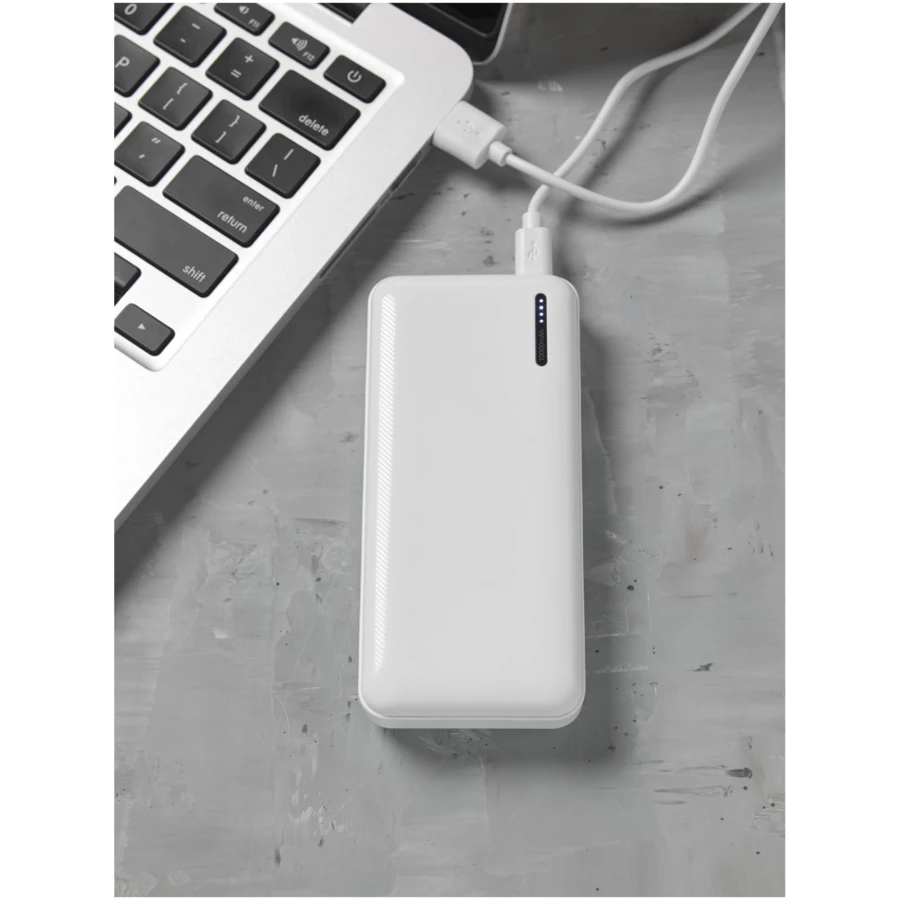 Powerbank Compress 10 000 mAh o zwiększonej pojemności jest bardzo kompaktowy, co czyni go idealnym rozwiązaniem w podróży. Wyposażony jest w akumulator litowo-polimerowy klasy A 10 000 mAh o mocy wyjściowej 5V/2A. Powerbank może być ładowany przez Micro USB lub USB typu C. Wskaźnik LED świeci się podczas ładowania i wyświetla poziom naładowania akumulatora. Zawiera kabel do ładowania USB-Micro USB.