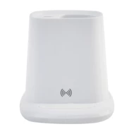 Wielofunkcyjny uchwyt na długopisy z recyklingowanego ABS z uchwytem na telefon, wbudowaną szybką ładowarką bezprzewodową (10 W), 1 portem USB i 1 portem USB-C. W zestawie kabel USB do ładowania.