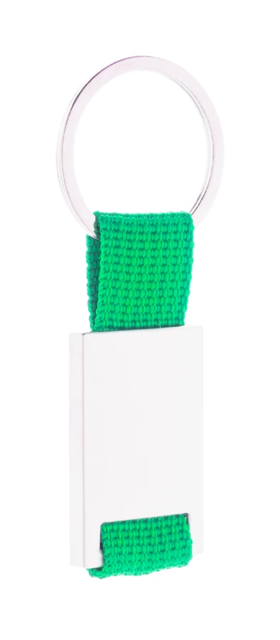 Metalowo/poliestrowy brelok. Zapakowany w folijkę.
