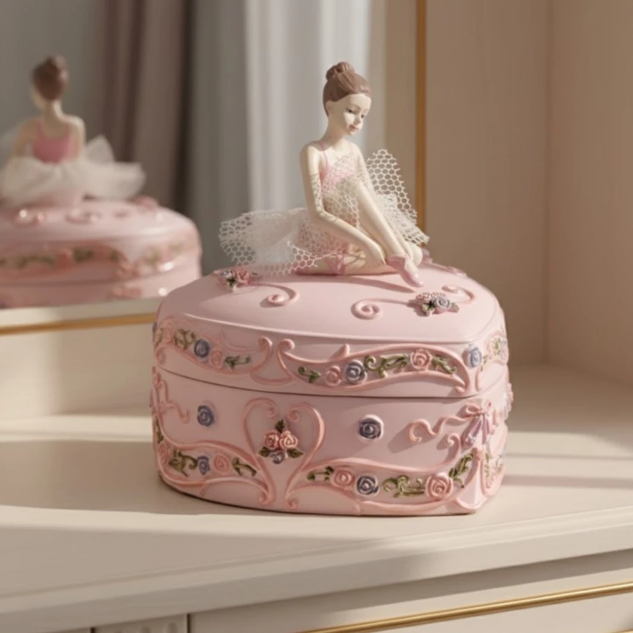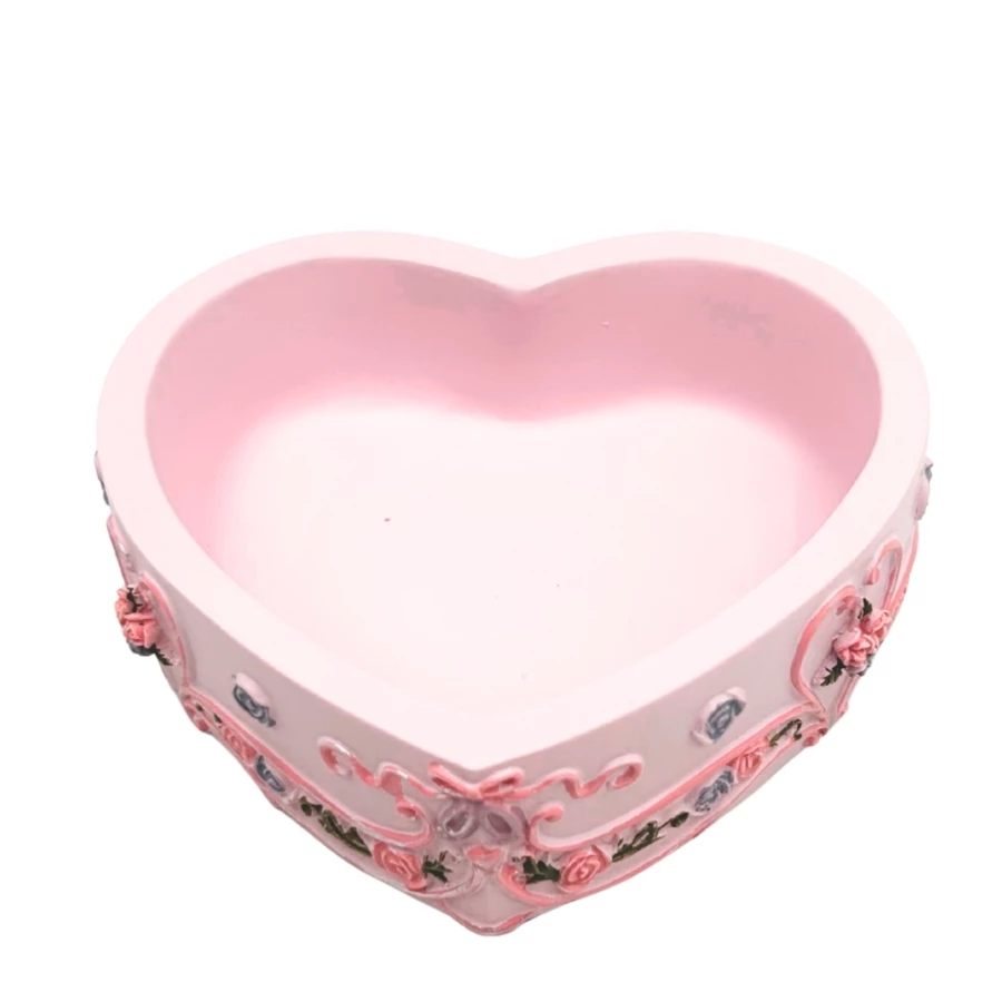 Kształt Serca i Kwiatowe Ornamenty – Romantyzm i Styl: Różowe, sercowate pudełeczko zdobione jest delikatnymi, reliefowymi kwiatami, które nadają mu elegancki, modny design. To idealny akcent do sypialni, toaletki lub pokoju dziecięcego.