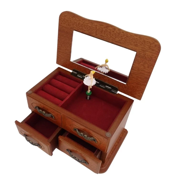 Szkatułka z 2 szufladkami. Po otworzeniu wieczka uruchamia się melodia “The Entertainer”