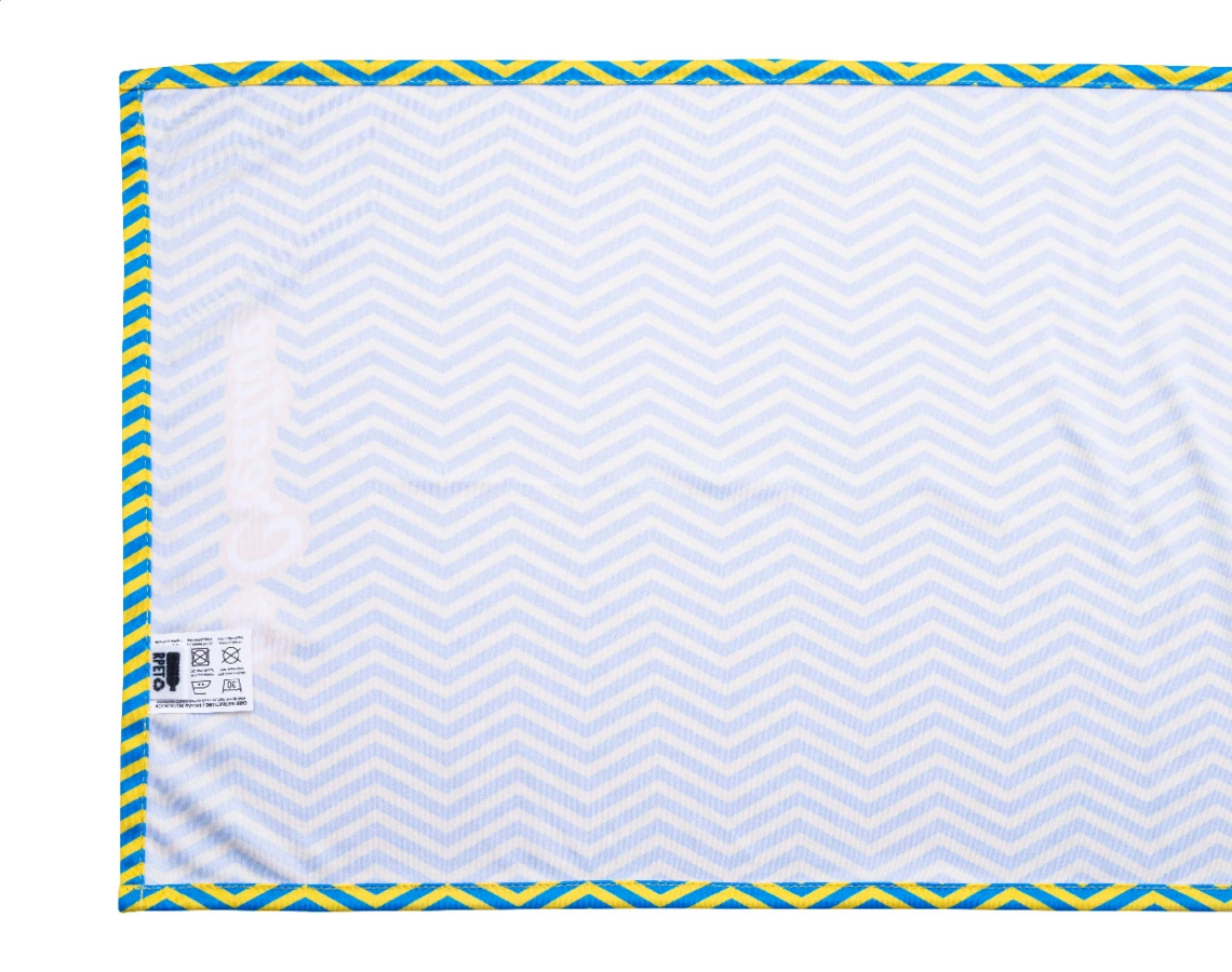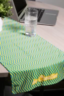Bieżnik stołowy wykonany na zamówienie z mikrofibry RPET (170 g/m²) z nadrukowaną metodą sublimacji grafiką na całej powierzchni. Min. ilość: 25 szt.