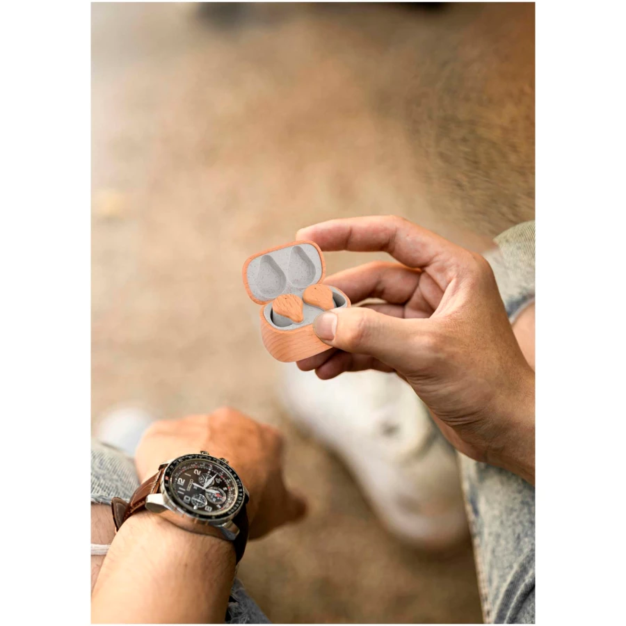 Bezprzewodowe słuchawki douszne z technologią ENC eliminującą hałas zewnętrzny. Słuchawki douszne działają do 6 godzin i są wyposażone w funkcję automatycznego włączania, która aktywuje je natychmiast po wyjęciu z etui. Dodatkowo baza ładująca jest kompatybilna z ładowarkami bezprzewodowymi. Słuchawki douszne ładują się w pełni w ciągu 1 godziny i obsługują połączenie Bluetooth® 5.0 o zasięgu do 10 metrów.