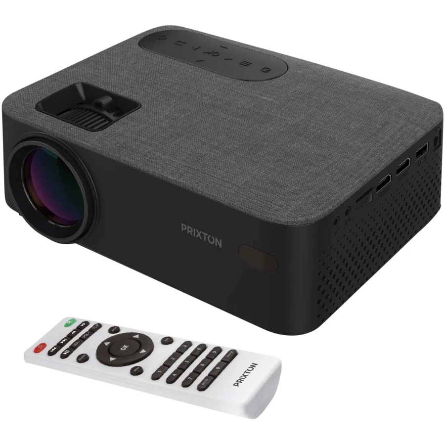 Projektor odtwarza filmy z maksymalną jakością obrazu. Obsługuje 1080P FULL HD, 1080i, 720p, 5761, 480p oraz 480i przez HDMI. System korekcji obrazu w pionie +/- 15 stopni. Pilot zdalnego sterowania i 2 głośniki w zestawie. Wyświetla filmy, dźwięk, zdjęcia i tekst. Rzeczywista rozdzielczość 1280 x 720. Lampa o mocy do 5000 lumenów. Biała dioda LED o mocy 100 ANSI lumenów. kontrast 500:1. Odległość projekcji do 5 m. Bezpośrednie podłączenie wszystkich typów odtwarzaczy przez HDMI. Wejście: VGA, 2xHDMI, USB2.0, MicroSD, Aux in i AV IN.