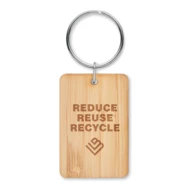 Prostokątny bambusowy brelok. Bambus jest produktem naturalnym, dlatego mogą wystąpić nieznaczne różnice w kolorze, wzorze i rozmiarze.