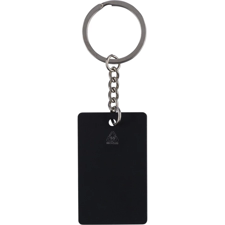 Prostokątny brelok do kluczy, ikona recyklingu na produkcie, produkt wykonany ze stali nierdzewnej z recyklingu
